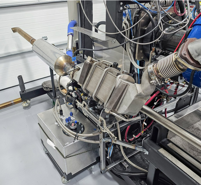 ▲ 프라운호퍼 IMM의 시험 설비에서 엔진 배기가스로 가열되는 암모니아 분해 장치. © First Ammonia Motors