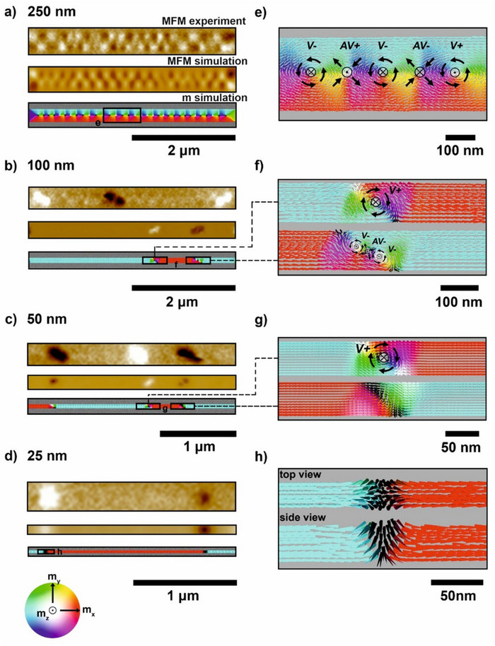 이전 실험과 달리 이번 실험에서 연구진은 나노 스트립의 폭을 줄여 25nm에 불과한 극히 얇은 자기 영역을 얻었다. 놀랍게도, 이 매우 얇은 스트립에서 나노자석들이 특정 지점에서 표면에 수직으로 정렬되는 현상을 발견했다.
