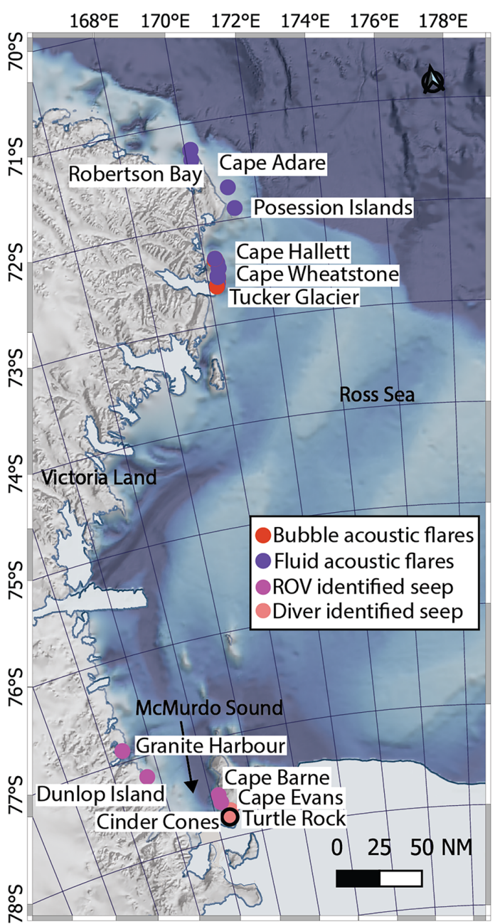 지리학자들은 로스해에서 새롭게 형성된 수많은 메탄 누출에 대해 우려하고 있다.