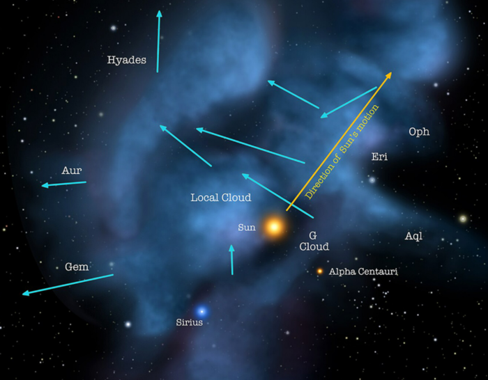 | ▲ 우리 태양은 여기 보이는 것처럼 우주에서 이웃 천체들에 대해 상대적으로 움직인다. 동시에 우리 태양은 우리 은하의 중심을 공전하며 우리 은하와 함께 우주를 여행한다. © NASA/Goddard; Adler/University of Chicago, Wesleyan |