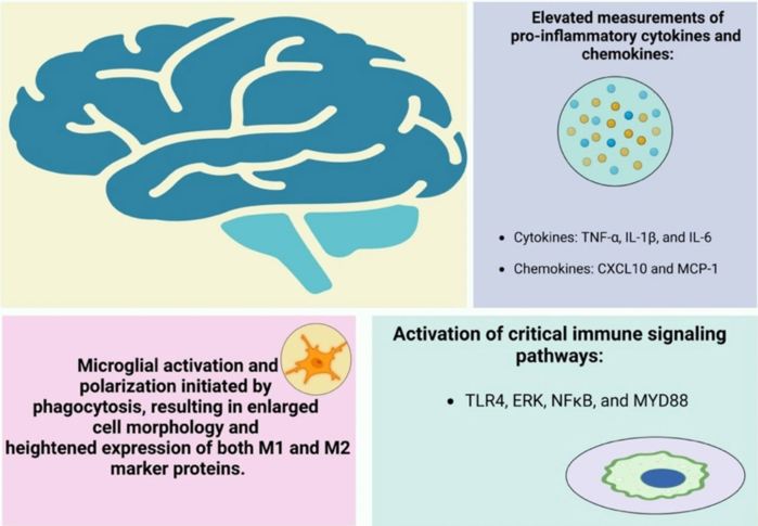 면역 반응과 만성 염증뇌에 침투한 플라스틱 입자는 면역 반응을 유발한다. 예를 들어, 나노플라스틱이 뇌의 식세포인 미세아교세포에 의해 섭취되면 활성화되고, 생리적 변화를 일으키며, 염증 매개체가 방출된다. 이는 연구 결과에서 밝혀졌다. 뇌의 성상세포 또한 이물질에 반응하여 추가적인 만성 염증 과정을 유발한다.