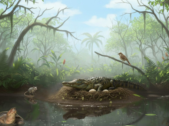 | ▲ 화석화된 알껍질은 일부 메코수치나에 악어가 5천 5백만 년 전 호숫가 둥지에 알을 낳았음을 증명한다. © Panades et al 2025/ Gemini AI로 생성 |