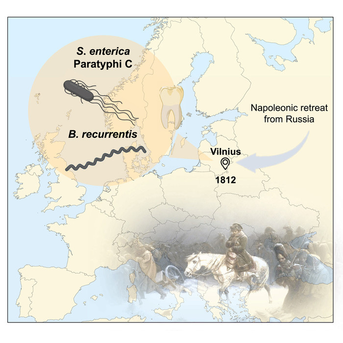 | ▲ 연구 개요도 (출처:Paratyphoid fever and relapsing fever in 1812 Napoleon's devastated army / October 24, 2025 / Current Biology) |