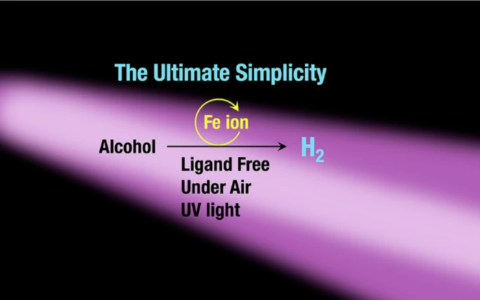 화학자들이 놀랍도록 간단한 수소 생산법을 발견했다. 복잡한 촉매 대신 메탄올, 수산화나트륨, 그리고 철 이온만 있으면 된다. 이 혼합물에 자외선을 쬐면 수소 가스가 발생한다. 연구진에 따르면 이 반응의 효율은 기존 촉매와 비슷한 수준이다. 이는 친환경 수소의 사용을 더욱 간편하고 경제적으로 만들 수 있다.