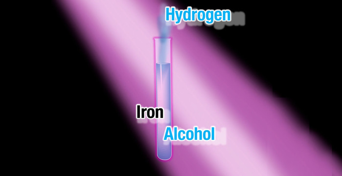 알코올, 수산화나트륨, 빛, 그리고 철을 이용한 수소 생산