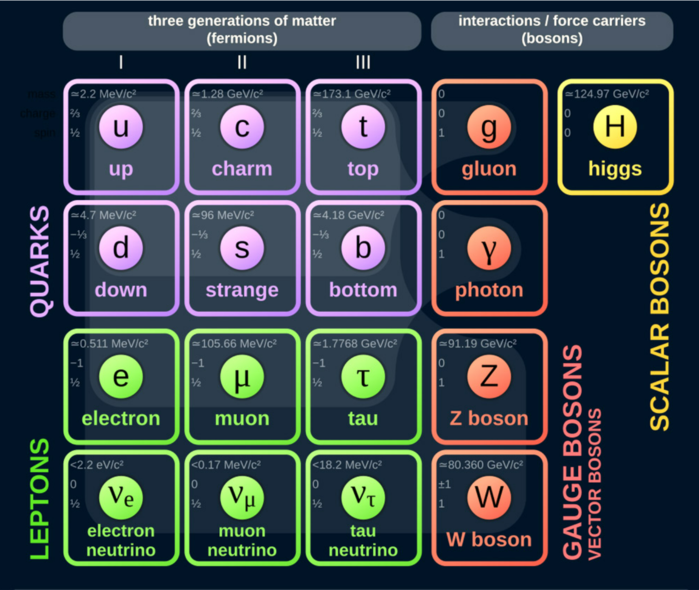곡선의 돌출부하지만 두 개의 가벼운 입자 그룹에 대해서는 아직 증거가 부족하다. CERN의 물리학자들은 2020년에 힉스 보손과 뮤온 사이의 결합에 대한 초기 징후를 발견했다. 뮤온은 타우 렙톤보다 가볍지만, 전자보다는 무거운 입자로, 기본 입자의 중간 세대에 속한다. 대형 강입자 가속기(LHC)에서 힉스 보손의 붕괴 과정에서 뮤온의 과잉 방출이 곡선에 "돌출부"로 나타났다.