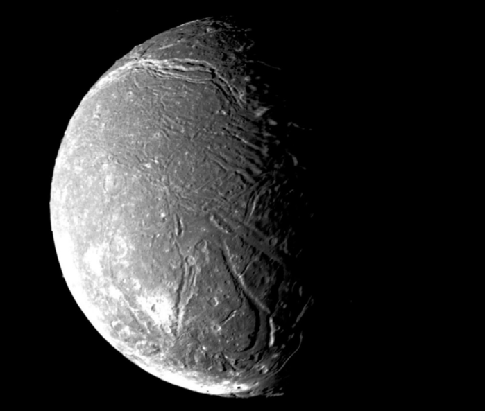 ▲ 천왕성의 위성 아리엘은 얼음 지각 아래에 170km 깊이의 바다를 가지고 있었거나, 지금도 가지고 있을 가능성이 있다. © NASA/JPL-Caltech/PSI/ Mikayla Kelley, Peter Buhler |