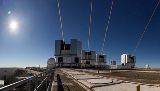칠레 아타카마 사막의 맑은 밤하늘을 마치 광선검처럼 네 개의 레이저 빔이 가로지른다. 마치 공상과학 소설 속 장면처럼 보이는 이 모든 것이 최첨단 천문학이다. 유럽 남방 천문대(ESO)의 초대형 망원경 간섭계(VLTI)는 이 레이저를 사용하여 인공 별을 만든다. 천문학자들은 이 별을 이용하여 지구 대기로 인한 흐릿함을 측정하고 보정할 수 있다.