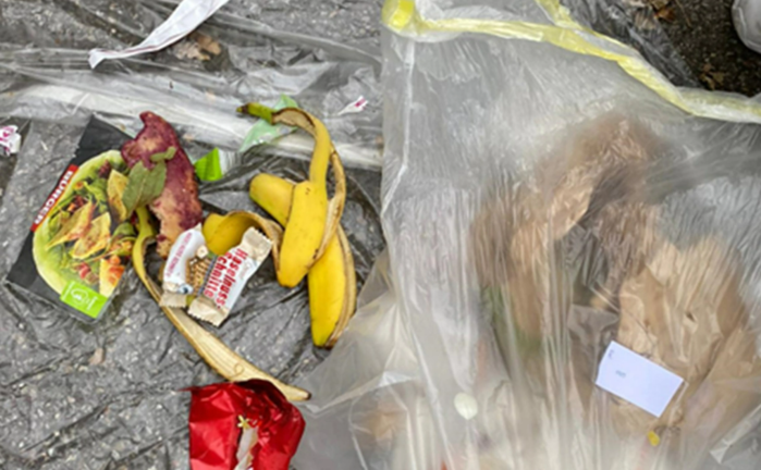 | ▲ 노란색 재활용 봉투에 든 바나나 껍질 – 왜 쓰레기 분리수거는 종종 실패할까? © Universität Hohenheim/ Eva Pawelczyk |