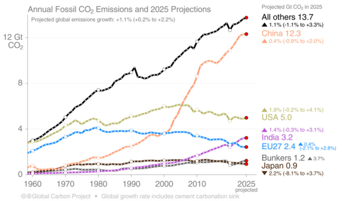 참고: Global Carbon Budget 2025, Earth System Science Data, doi: 10.5194/essd-2025-659