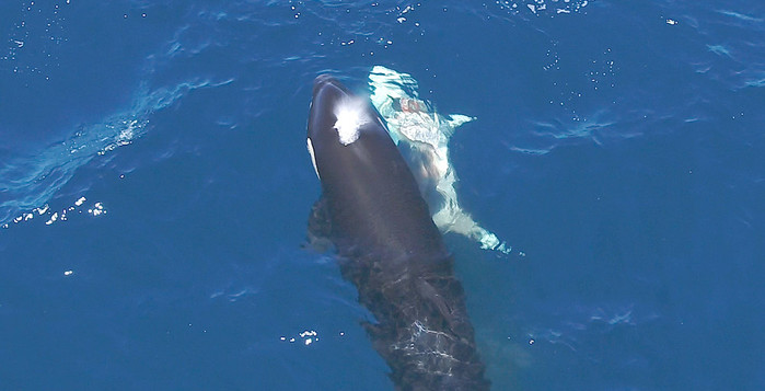 | ▲ 어린 백상아리를 공격하는 범고래. © Marco Villegas |