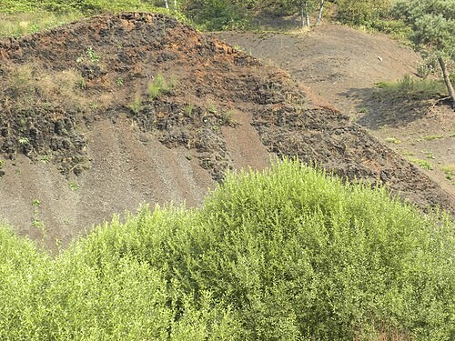 ▲ 피트 중앙 부근의 메셀 오일 셰일 노두 |