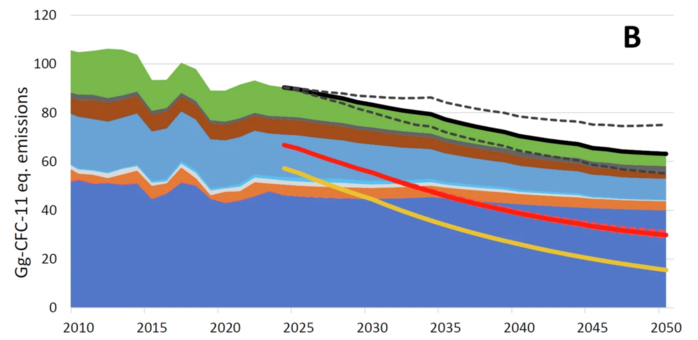 분석 결과, 오존층 파괴 물질인 원료 화학물질의 전 세계 배출량은 감소하지 않고 오히려 증가한 것으로 나타났다. 라이만은 "이러한 물질들은 생산, 운송, 그리고 추가 가공 과정에서 더 많은 양으로 배출되고 있으며, 현재 생산량은 30년 전 추정치보다 훨씬 많다"고 보고했다. 예를 들어, 이러한 "오존 파괴 물질"의 생산량은 2000년에서 2024년 사이에만 163% 증가했다.