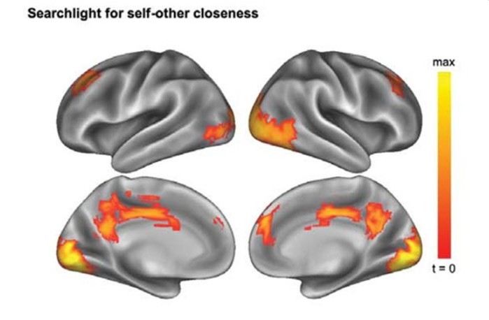 자신에 대해 생각할 때 친한 친구 나 언론에서 알려진 유명인에 대해서만 명상할 때와는 다른 회로기 활성화된다. 그러나 더 가깝게 느낄수록 이러한 패턴은 더 유사했다.