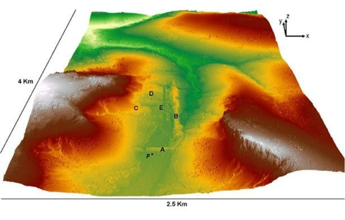 | ▲ 레이저 데이터 분석 결과, 프놈 쿨렌 섬에는 거대한 저수지를 둘러싼 두 개의 대형 댐이 존재했던 것으로 나타났다. © Stephane De Greef/Archaeology and Development Foundation, PLOS ONE, doi: 10.1371/journal.pone.0084252.g002 |