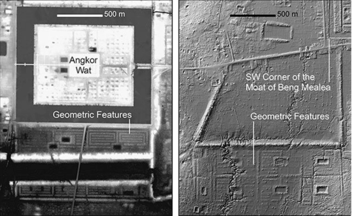 - 앙코르와 프놈쿨렌에서 발견된 기하학적 형태의 토루 또한 마찬가지로 불가사의