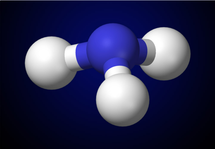 ▲ 암모니아는 질소 원자 하나와 수소 원자 세 개로 이루어져 있다. © 퍼블릭 도메인