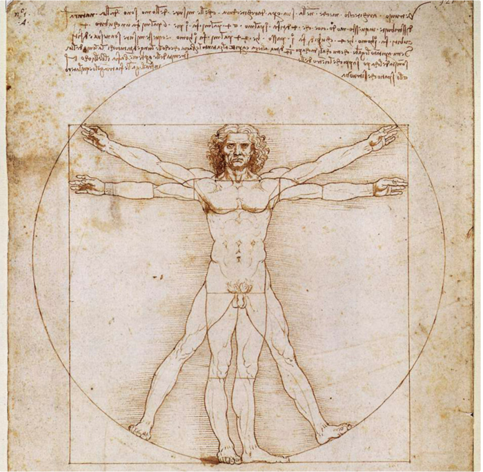 후에 레오나르도 다빈치는 그의 유명한 인체 드로잉에서 황금비를 재발견하려 했다. 그는 다음과 같이 분명히 말했다. "인간의 창의적인 정신은 자연이 이룩한 것보다 더 아름답고, 더 단순하고, 더 정확한 것을 결코 생각해낼 수 없다. 자연의 발명품에는 부족한 것도 없고, 불필요한 것도 없기 때문이다."