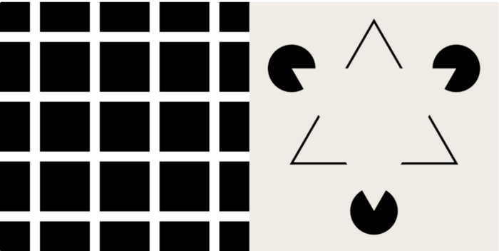 - 카니자 삼각형:가장자리의 많은 부분이 없어졌음에도 우리에게 완전한 삼각형으로 보여