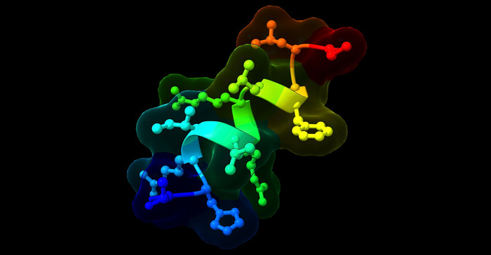 | ▲ 펩타이드 BRP는 12개의 아미노산 사슬로 구성되어 있다. 이 약은 쥐와 돼지의 식욕을 억제하고, 동물에게 메스꺼움을 유발하지 않으면서도 체중 감량을 촉진한다. © Katrin Svensson/Stanford Medicine |