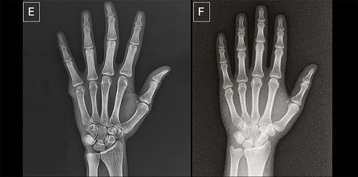 | ▲ 진짜일까요, 가짜일까요? 이 엑스레이 이미지 중 하나는 인공지능이 생성한 것이고, 다른 하나는 실제 이미지다. 어느 것이 진짜일까? (정답은 기사 끝부분에 있다) © Radiological Society of North America (RSNA)