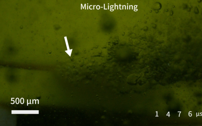 이를 통해 메탄 미세 기포가 물속에서 상승하여 결국 공기와 접촉하면서 폭발한다는 것을 보여주었다. 메탄가스와 액체 사이의 곡선 경계면에 전하가 축적되었다. 이러한 기포들이 상승, 병합, 또는 분리될 때 서로 충돌하면 전하 분리가 발생할 수 있다. 반대 전하를 가진 기체 기포가 생성된다.