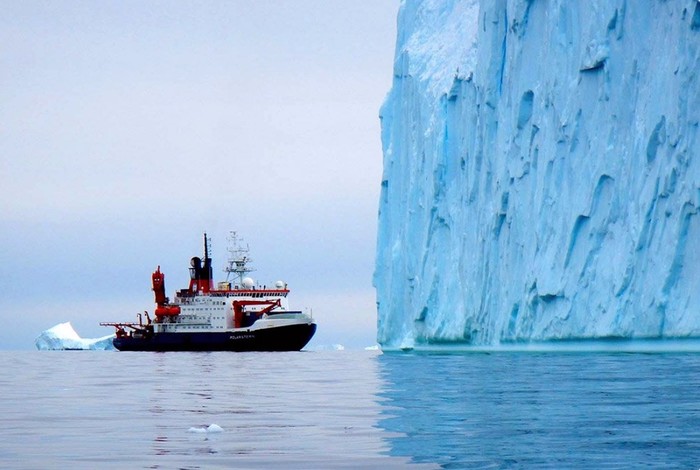 ▲ 연구선 '폴라스테른'이 아문젠 해의 빙벽 앞에 있는 모습. © Alfred-Wegener-Institut |