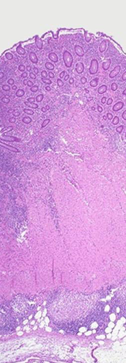 ▲ 미세조직절편, 크론병 (출처:https://de.wikipedia.org/wiki/Morbus_Crohn#/ media/Datei:Crohn's_transmural_path.jpg) |