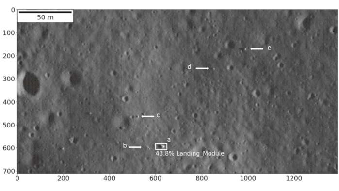 달 착륙선, 추진 시스템, 측면 패널 등의 어두운 부분인공지능은 실제로 여러 개의 어두운 물체를 인공물로 식별했다. 그중 하나는 루나 9호 달 착륙선의 모양과 크기와 일치했다. 피노 연구팀은 "모델이 북위 7.029도, 동경 64.329도에 위치한 물체를 달 착륙선으로 분류했다"고 밝혔다. 이러한 식별 결과는 다양한 시점과 조명 조건에서 촬영된 해당 지역의 추가 이미지에서도 확인되었다.