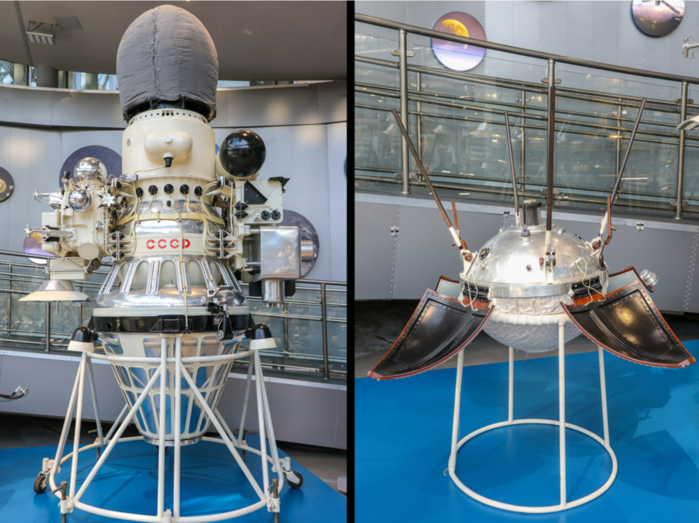 | ▲ 소련의 달 탐사선 루나 9호와 착륙선(오른쪽) 모형.