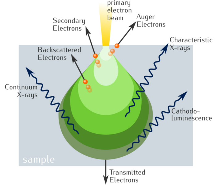 | ▲ 2차 저속 전자 방출은 주사 전자 현미경을 비롯한 여러 기술에서 중요한 역할을 한다. © Ponor/ CC-by-sa 4.0 |