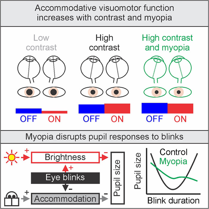 | ▲ 연구 개요도(출처:February 17, 2026 / Human accommodative visuomotor function is driven by contrast through ON and OFF pathways and is enhanced in myopia / Cell Reports) |