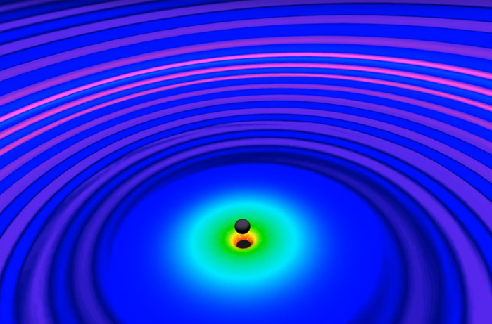 나선 접근과 병합 과정에서 블랙홀은 에너지를 잃고, 그중 일부는 중력파의 형태로 방출됐다. 이 에너지의 크기와 파동의 특성은 아인슈타인의 장 방정식을 사용하여 계산할 수 있다.