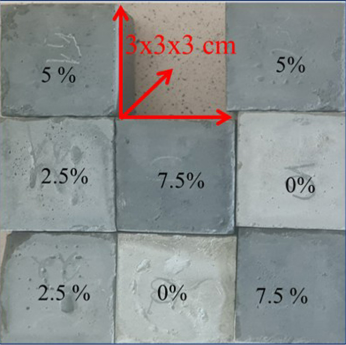 | ▲ 섬유재의 비율이 다양한 시멘트 샘플. © 카우나스 공과대학교 |