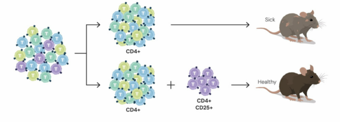 이러한 T 세포에 대한 면밀한 분석을 통해 이미 알려진 T 킬러 세포와 T 헬퍼 세포 외에도 추가적인 표면 특성을 가진 여러 변이체가 존재함을 발견했다. CD4 헬퍼 세포 외에도 이 T 세포들은 세포 표면에 CD25 단백질을 가지고 있었다. 생쥐 실험 결과, 이 T 세포들은 다른 면역 세포에 대해 활성화 효과보다는 억제 효과를 갖는 것으로 나타났다.