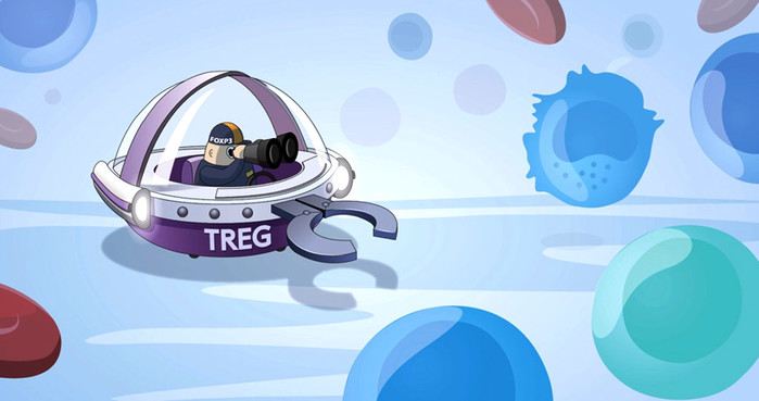 ▲ 조절 T 세포는 다른 면역 세포가 자기 항원에 잘못 반응할 때 이를 감지하여 억제 전달 물질을 분비한다. © Nobelprize.org |