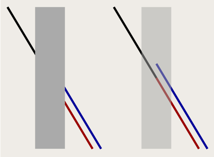 포겐도르프(Poggendorff) 착시는 막대에 가려진 사선이 서로 상쇄되는 듯한 느낌을 준다. 이러한 착시에 대한 한 가지 설명은 우리 뇌가 이미지를 공간적으로 해석한다는 것이다. 이러한 원근법적 표현은 선과 막대 사이의 각도를 왜곡하여 보이게 한다. 이로 인해 우리는 존재하지 않는 높이 차이를 인지하게 된다. (계속)