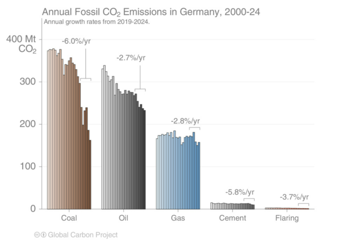 | ▲ 독일의 화석 연료 이산화탄소 배출량 추이 © Global Carbon Budget 2025 / CC-by 4.0 |