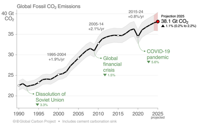 참고: Global Carbon Budget 2025, Earth System Science Data, doi: 10.5194/essd-2025-659