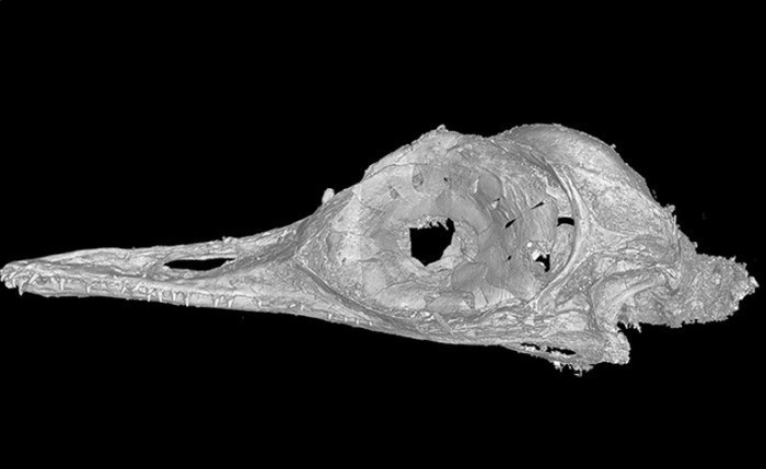 베이징에 있는 중국 지질과학대학의 리다 싱(Lida Xing)과 동료들은 디노(Dino) 시대에서 만들어진 희귀한 화석을 발견했다. 크기가 매우 작은 새 같은 공룡의 두개골이다. 약 9천 9백만 년 전의 호박 조각은 미얀마 북부의 앙 바모지역(Angbamo)에서 나왔다. 그 안에 들어있는 두개골은 7.1mm(밀리미터) 길이에 불과하지만 완전히 자란 동물에 속하는 것으로 보인다.