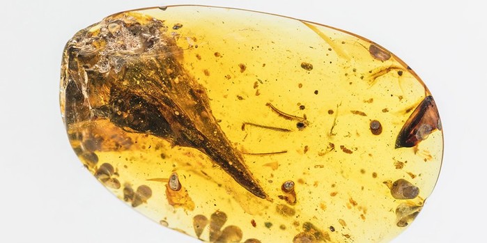앰버(amber)는 수백만 년에 걸쳐 거의 변하지 않은 식물, 동물 및 기타 유기체의 일부를 보존할 수 있다. 과거에 호박에 갇힌 유물은 연구원들에게 특히 중요하다. 항상 과거의 시간에 대한 독특한 정보를 제공한다. 고생물학자들은 종종 화석 나무 수지에서 곤충이나 원시 꽃을 찾는다. 대조적으로, 척추동물 발견은 극히 드물다. 도마뱀의 발, 원시 조류 날개 또는 어린 공룡의 꼬리와 같은 호박석 화석은 매우 희귀하다.