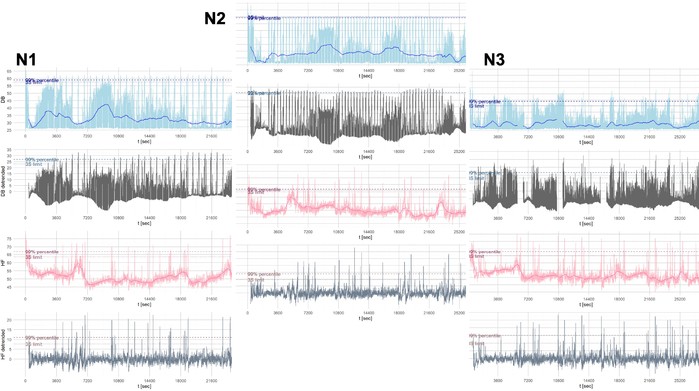 | ▲ 연구 기간 동안 소음 최고점에 대한 심박수 반응을 측정했다(N1 = 1일차, N2 = 2일차, N3 = 3일차). 각 연구 기간 동안 소음과 심박수를 매초 기록하고 ±350초 이동평균을 사용하여 추세를 제거했다. 심박수 반응은 소음 최고점 발생 후 180초 이내의 최고점을 식별하고 각 소음 발생 전후의 평균 심박수를 비교하여 평가했다. (출처: A randomized, double-blind, crossover study of acute low-level night-time road traffic noise: effects on vascular function, sleep, and proteomic signatures in healthy adults / 25 February 2026 / Cardiovascular Research) |