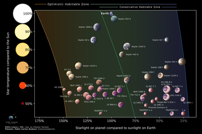 칼테네거는 최근 개봉한 영화 "우주비행사"를 언급하며 "이번 연구는 우리가 '최후의 수단'으로 우주 탐사선을 만든다면 생명체를 찾기 위해 어디로 가야 할지 보여준다"고 말했다. 생명체 거주 가능성이 있는 행성 후보 목록에 오르려면 질량은 지구 질량의 5배 이하, 반지름은 지구 반지름의 2배 이하이어야 하고, 지구가 태양으로부터 받는 것과 비슷한 양의 복사 에너지를 항성으로부터 받아야 하며, 가능한 한 가깝고 관측하기 쉬워야 한다.